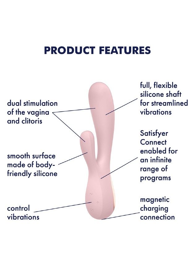 Get ready to elevate your pleasure with The Satisfyer Mono Flex Rabbit Vibrator! 50 customizable vibration combinations Free Satisfyer Remote App Whisper Mode Made of the highest quality materials, this rabbit vibrator has an eye-catching, sleek design that makes for an ultra-smooth finish which effortlessly contours to the curves of your body. This rabbit vibrator is packed with two powerful motors ready to give you memorable orgasms, which can be controlled together or separately.