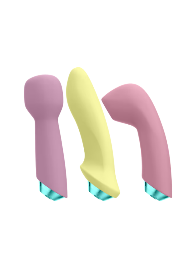Why settle for one when you can have four? The Satisfyer Fabulous Four set is your ultimate pleasure package, offering all your sensual essentials in one versatile collection! This all-in-one set features a rabbit vibrator, anal vibrator, pressure wave stimulator, and massager, giving you complete control over your pleasure adventures. Seamlessly switch between toys with the innovative 90° Click & Rotate base, designed for effortless, personalized fun. Whether you're new to the world of pleasure or a seasoned explorer, this set is your perfect companion!