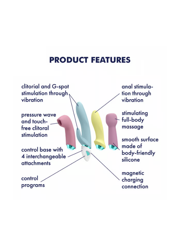 With the Satisfyer Fabulous Four, you’ll never run out of ways to enjoy yourself! Explore your desires and find the perfect pleasure companion with this all-in-one set.