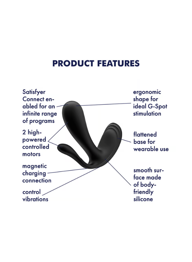 The Satisfyer Top Secret+ is made from high-quality, soft silicone that feels luxurious against the skin. This clever toy features two shafts—one for G-spot and one for anal stimulation—each with its own motor for intense, targeted vibrations. You can easily control it using the intuitive control panel or connect it to the Satisfyer Connect app for even more fun. Sync the vibrations to your favorite songs, or let your partner take over, no matter where they are in the world! Whether you're out and about or relaxing at home, Top Secret+ is your little thrill in disguise.