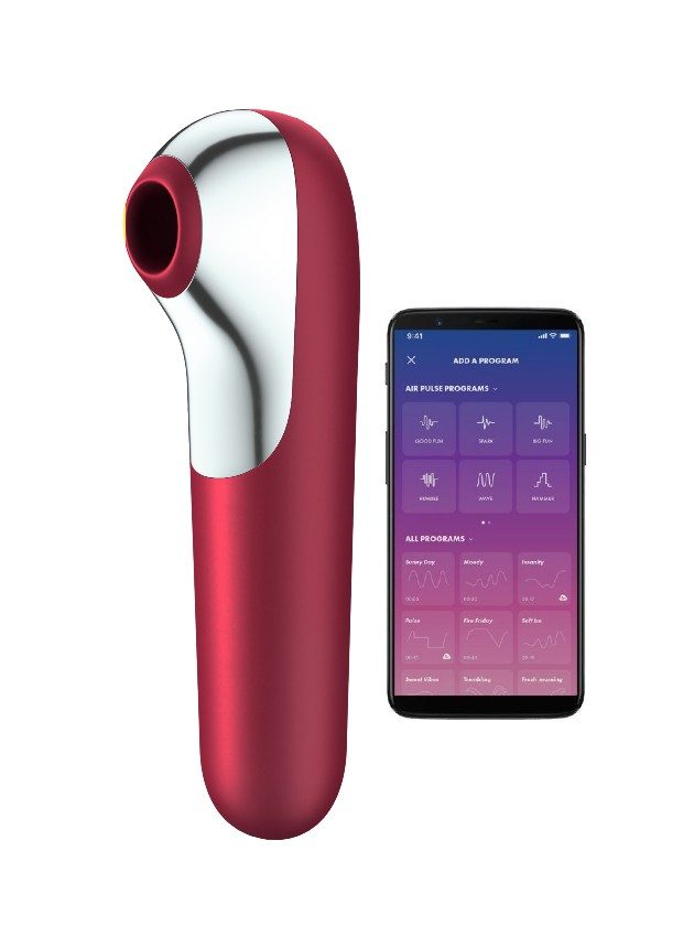 The Dual Love has 10 built-in pressure wave levels that can be controlled both via the intuitive control panel or via the Satisfyer Connect App, which is free to download on Android, iOS, and Apple Watch. Take control of your pleasure remotely or let your partner take over and create your own vibration programs for an intimate play with your partner