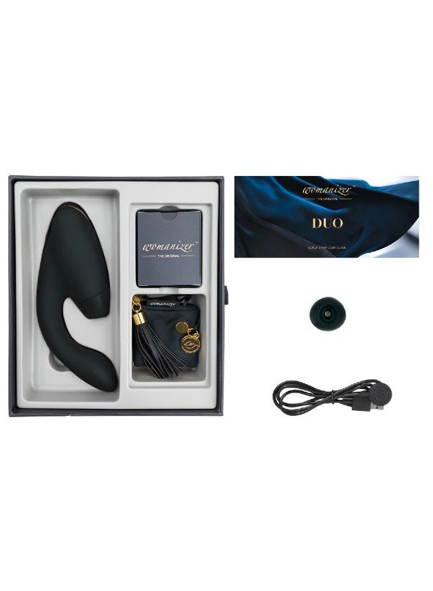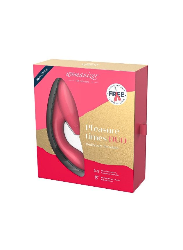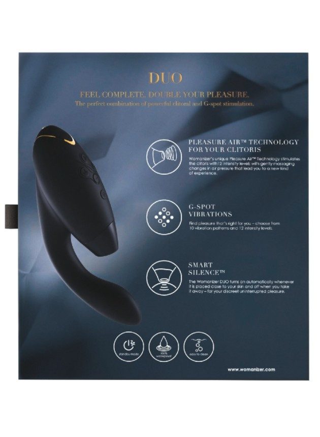 Duo looks sensual and ravishing with 4 different come-hither shades. It’s equipped with Womanizer's unique Pleasure Air technology to deliciously massage your clitoris on the outside, while the perfectly curved vibrator tenderly spoils your G-spot.