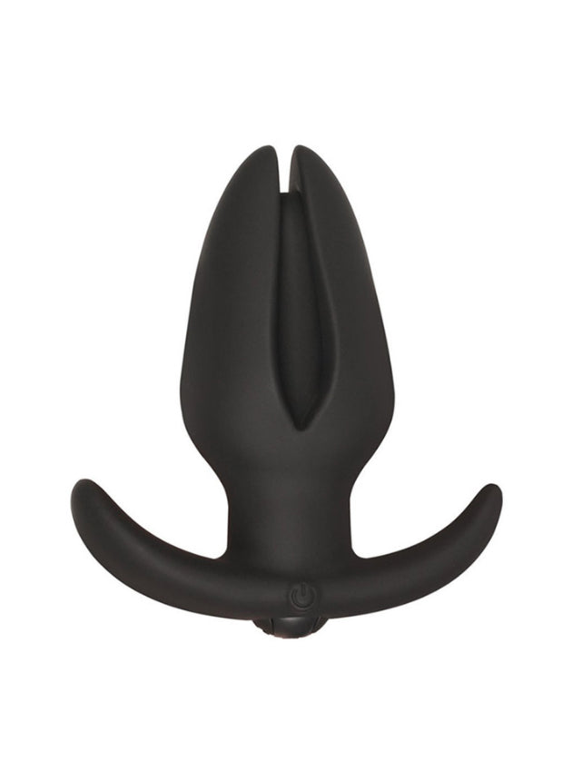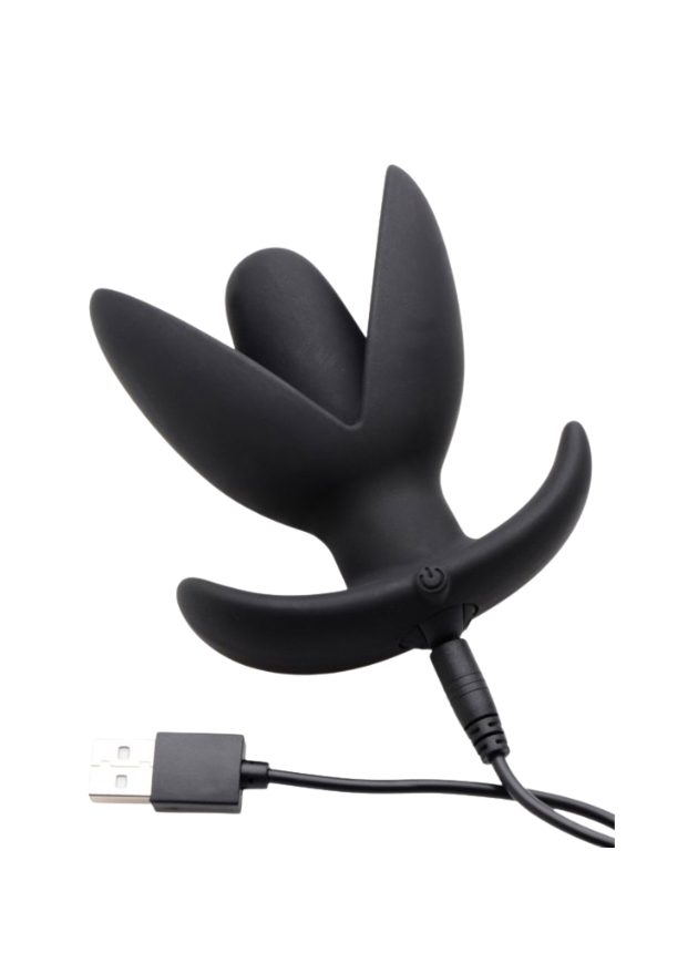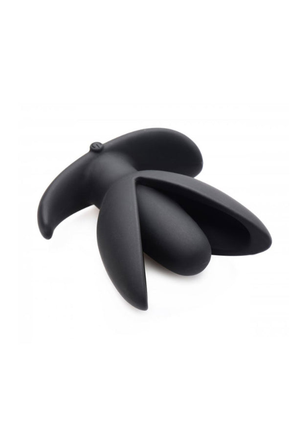 The butt plug's flexible petal design is crafted for easy insertion and achievable pleasure as it unfolds after insertion. The curved base targets your rear erogenous zones for a blend of seductive leisure. With a waterproof finish, explore the butt plug's ten vibration speeds in the shower or tub. Access the power button on the base of the plug.