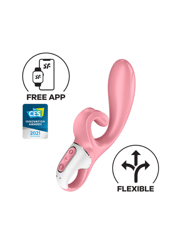 The power of oral stimulation right at your fingertips Satisfyer Hug Me App-Controlled Vibrator simulates oral pleasure with its tongue-shaped tip while indulging your internal desires. This rabbit vibrator combines a clitoral stimulator with a formidable shaft to hug all your curves and edges just right.