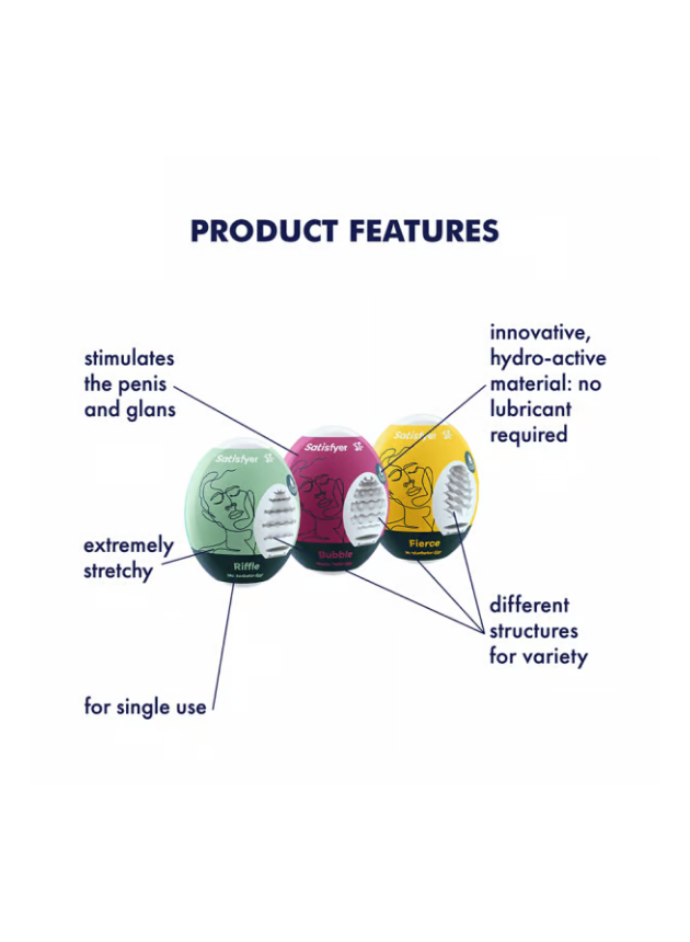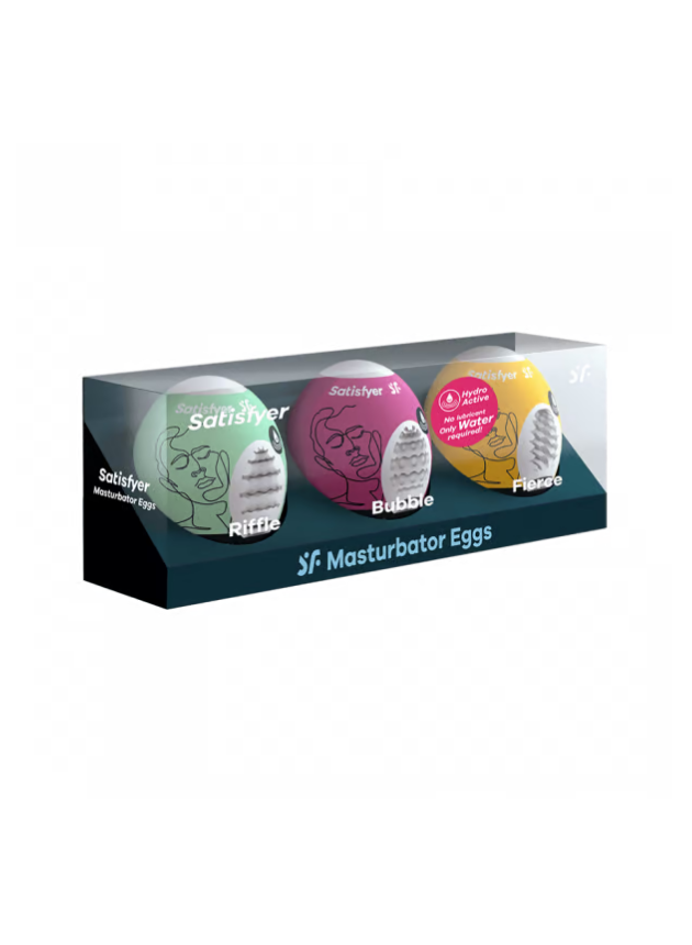 Satisfyer Masturbator Eggs Set of 3 Riffle, Bubble, Fierce Multi-colored