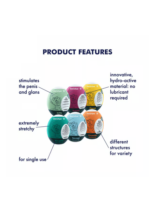 Ready to enhance your me-time? Try the Satisfyer SF Masturbator Eggs for easy, mess-free pleasure anytime you want. Simply moisten, enjoy, and dispose after use. Elevate your solo play with these convenient, high-sensation eggs and experience pleasure on demand—no fuss, just fun!